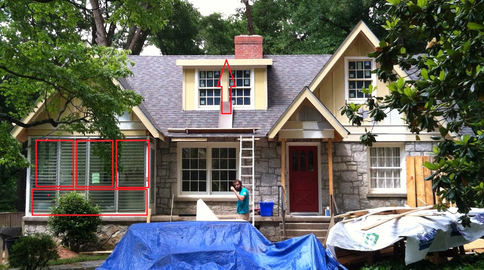 All that's left is the sun room on the left - where you can see a super professional rendering. We're removing the louvred windows and doing a knee wall along the bottom, but keeping the sun room vibe with large windows on all sides. That should be done next week.